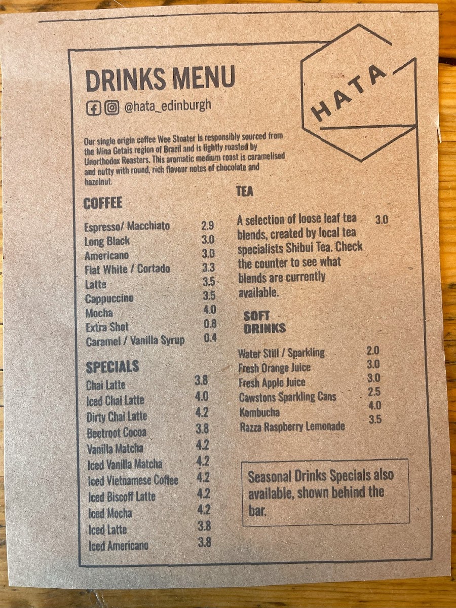 Welcome to Hata - 5 Rodney St, a charming coffee haven nestled in the heart of Edinburgh. This cozy spot is perfect for anyone seeking a delightful breakfast or a soothing coffee break. The menu offers an array of unique beverages like the Chai Latte (£3.80) and the Dirty Chai Latte (£4.20), which perfectly complement their creative porridge options, such as the apple and biscuit porridge.